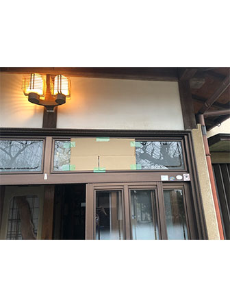 玄関の引き戸の上のガラスが割れていました。詳細は分かりませんが、お客様は石を投げられたとおっしゃっていました。デザインガラスが入っていましたが、施工まで時間がかかってしまうため、すりガラスでの交換対応致しました。お客様がお急ぎで施工希望だったため、相談をしっかりと受け止め、それに沿って対応致しました。特に問題なく作業完了致しました。