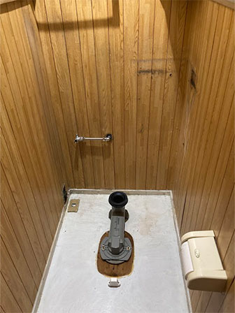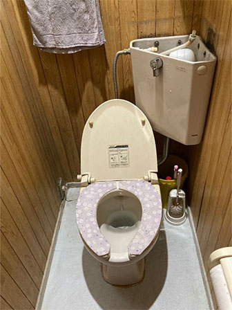 トイレの水が止まらないと連絡を頂きました。お伺い確認したところ便器内にちょろちょろ水が流れ出ている状態でした。使用年数40年とのことで、要因としてはボールタップ、サイフォン管、アングル止水栓の経年劣化が考えられます。不具合個所3か所の修理でも改善するが、トイレを外して作業をするため違う個所で不具合が起こる可能性が高いと説明して便器一式交換することの方が安心して長く使えると説明。排水位置が壁から500㎜以上ありリモデルタイプに交換アングル止水栓の位置も変更致しました。