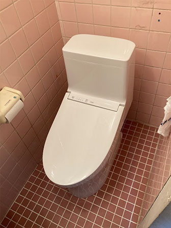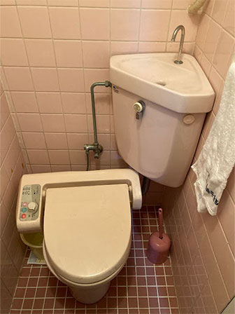 ウォシュレットの横側より水が漏れてきているため修理して欲しいとのご依頼でした。現場を確認するとウォシュレットの配管より水漏れしており修理は不可能な状態。全体的に30年は使用されていると判断しタンクや便器・ウォシュレットの交換をご提案し成約。他にも手洗い場の水洗蛇口が回らず元栓を開け閉めして使用していたとの事で水洗蛇口も交換させて頂く事をご提案し成約となりました。交換完了後にお客様に確認して頂いた処、大変ご満足頂けました。
