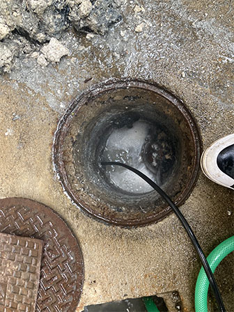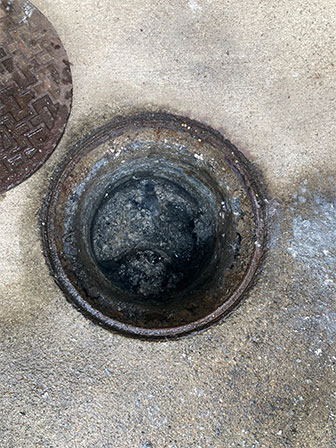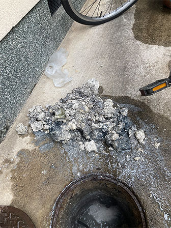浴室の水を抜いた際、なかなか抜けなくなり、近くの枡から排水が溢れてしまったとのことでした。配管内及び枡の中に、主に油粕が堆積してしまい詰まって水が流れない状態でした。長期に渡り枡清掃をしなかったたことが原因となります。枡内の堆積物を除去した上で、配管内を高圧洗浄機を使用してへばりついた汚れを取り除きました。