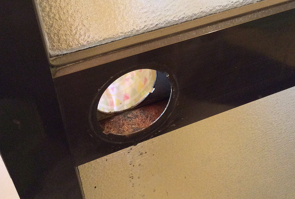 ※丸座の回りが錆び付いて取り外しが困難な場合は、錆び取りスプレーを少しずつかけて錆びを落としてからドライバーで取り外してみましょう。錆び取りスプレーをしても取り外しが出来ない場合、力任せに取り外そうとするとドアが破損してしまうこともあるため、プロに相談しましょう。