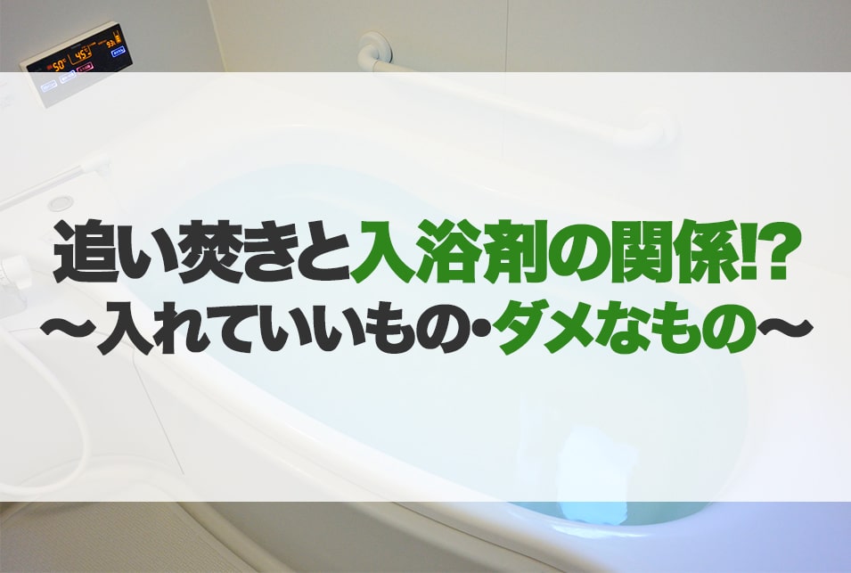 説明 追い焚き機能付きのお風呂に入浴剤を入れていいのかわからなくて、お困りではありませんか?入浴剤の中には、追い焚き機能のあるお風呂には入れない方がよい種類もあります。そこで今回は、給湯器の追い焚き機能と入浴剤の関係や、入れていいもの・ダメなものについてご紹介したいと思います。