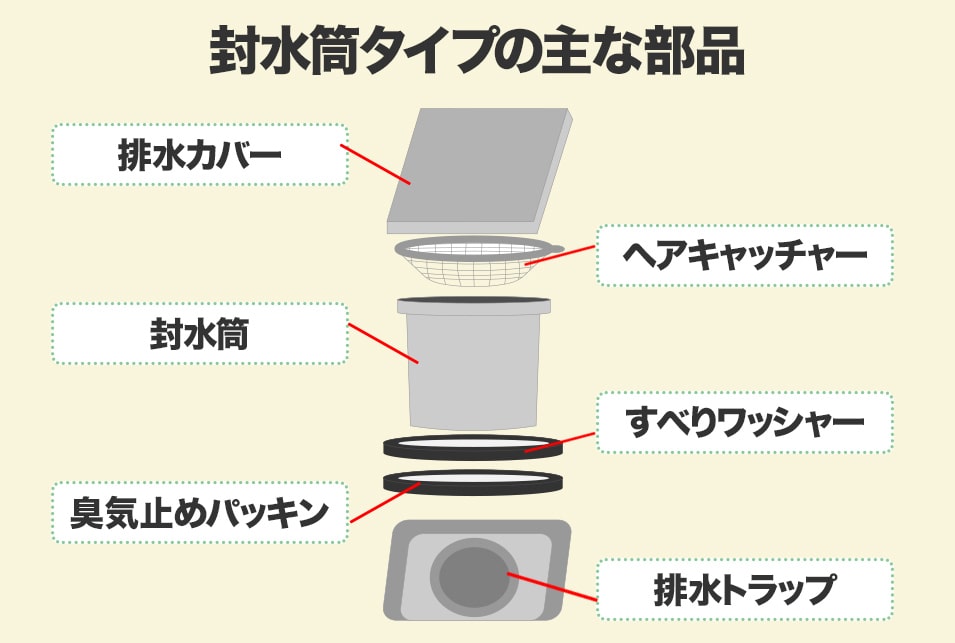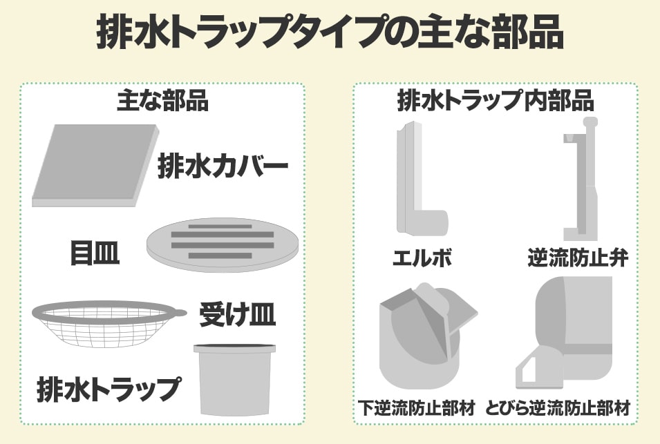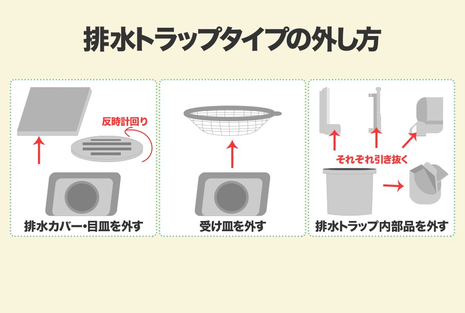 下記の項目で排水トラップ内部まで外す手順をご紹介しているので、定期的に内部部品の掃除も行ってみてはいかがでしょうか。