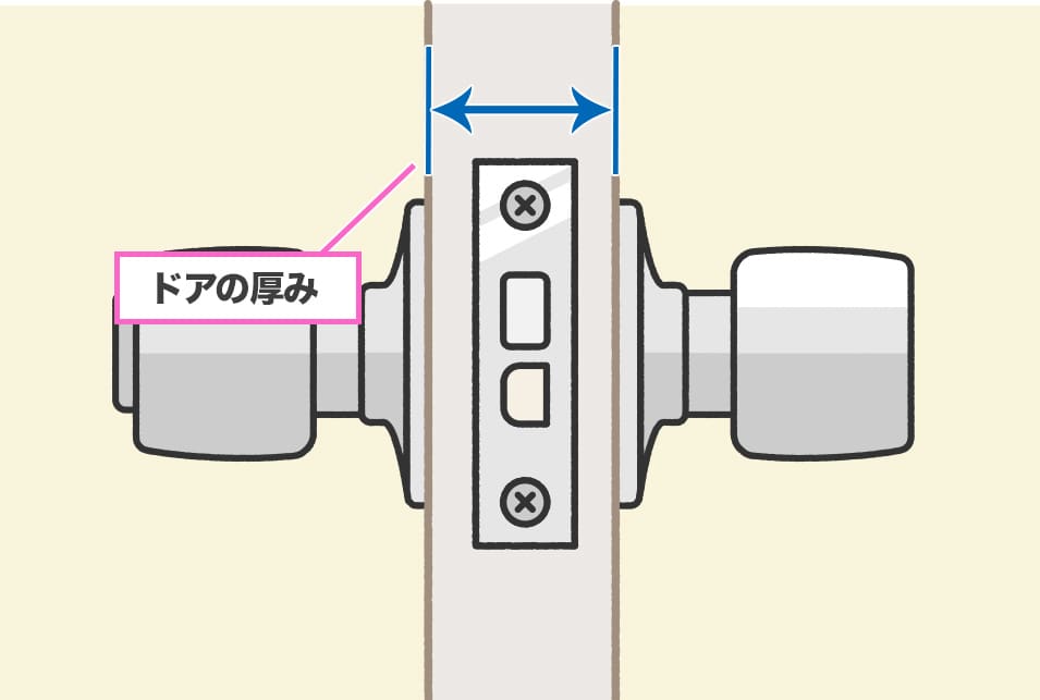 大体のドアノブで、ドア厚の対応幅は「〇〇~〇〇mm」というように、ある程度余裕があります。