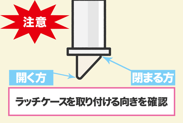 「ラッチケースが入りきらなくて・・」「取り付けられたけど、穴が見えてて」という症状は、「サイズが合っていない」ために起こる失敗です。