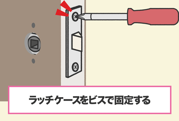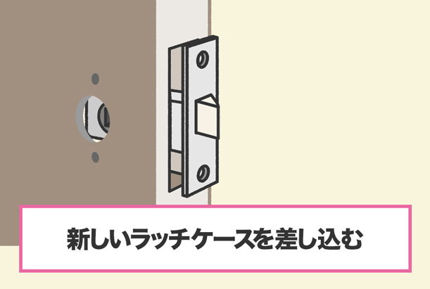 『鍵なし→ラッチ固定式』の交換であれば、ドア枠に穴空け加工をしなくても取り付けられる可能性が高いでしょう。