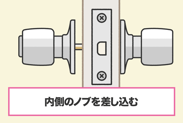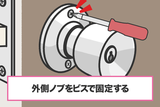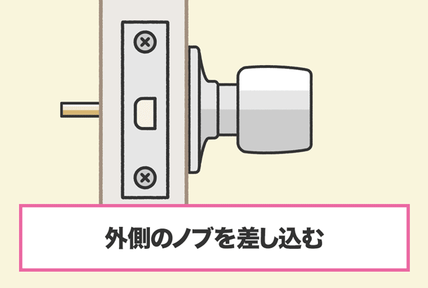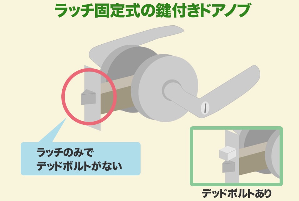鍵なしから鍵付きのドアノブに交換する場合、「ラッチを固定して施錠する」タイプのドアノブを選ぶのが簡単です。