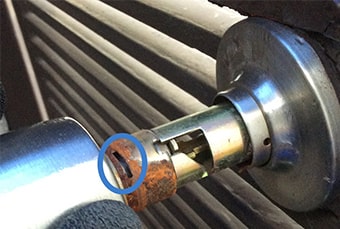 浴室ドアレバーが固く下がらない状況でご相談をいただきました。湿気によりひどく錆びついており、錠前が機能していない状態でした。錆が原因で錠前内が変形しており取り外しができない状態でしたのでレバーハンドルを切断して取り外し、錠前一式交換にて対応いたしました。