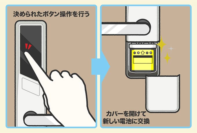 ここでは、外から電池交換が可能な場合の電子錠の電池交換方法をご紹介します。