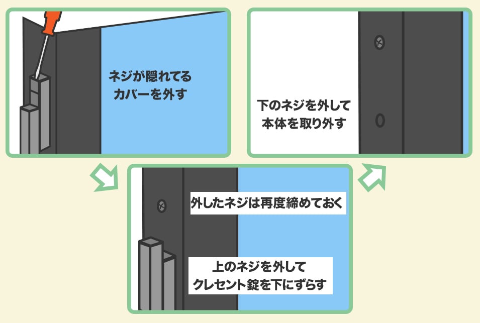 ここでは、クレセント錠の交換方法をご紹介します。