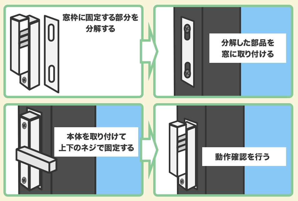 窓からの侵入を防ぐために、クレセント錠を交換する・補助錠を設置することをおすすめします。