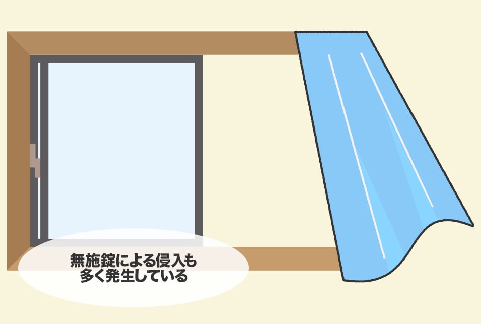 窓からの侵入はガラス破りだけでなく、無施錠によるものも多く発生しています。