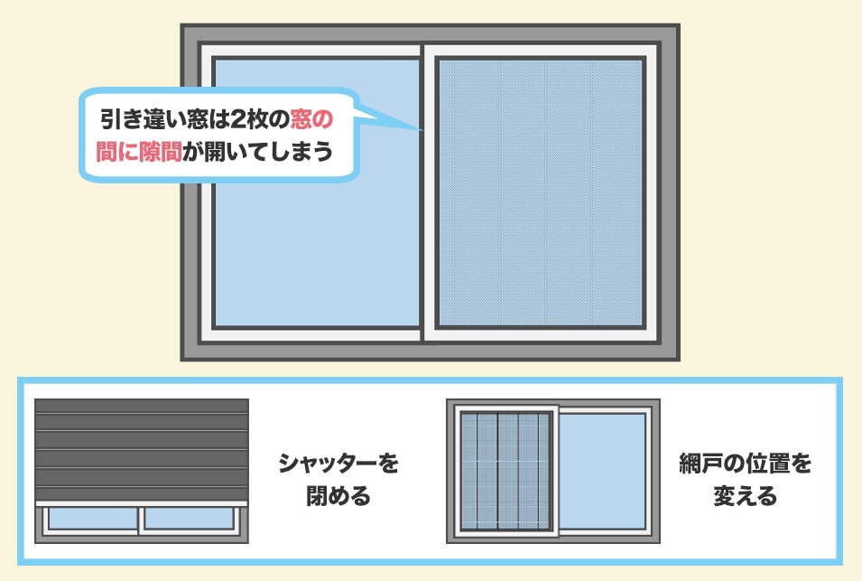 窓には引き違い窓と呼ばれる、2枚以上の窓を交差して取り付けてある種類があります。このタイプの窓は窓同士の間に隙間が空いているため、風とともに雨が吹き込んでくることがあります。