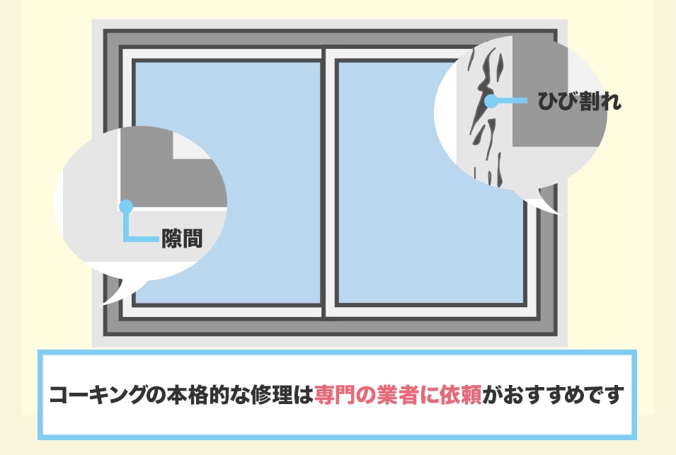 シーリング材の劣化が見られる場合は早めに業者に依頼し、どちらの修理方法が適切かをきちんと相談したうえで修理を行うことがおすすめです。