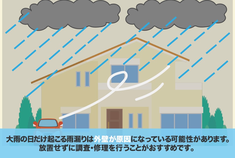 通常の雨の日は特に問題ないのに、大雨や強風のときだけ雨漏りが発生することがあります。