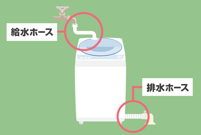 洗濯機ホースには排水ホースと給水ホースの2種類があり、排水ホースは洗濯機下部、給水ホースは洗濯機上部に接続されています。