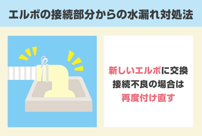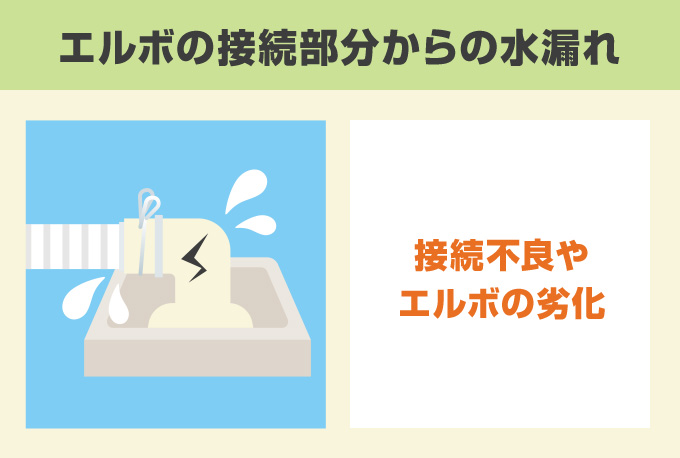 排水ホースとエルボの接続部分から水漏れしている場合は、接続不良やエルボの劣化が原因と考えられます。