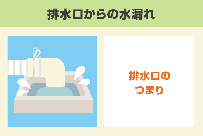 排水ホースに繋がっている排水口から水漏れしている場合は、排水口の詰まりが原因である可能性が高いです。