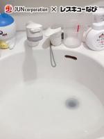 浴槽の排水口がつまり、流れないとの状況でご相談をいただきました。経年使用により髪の毛などの汚れが排水管内に蓄積したことがつまりの原因であると考えられます。配管のつまりを取り除く専用の道具を使用し、排水路にふたをしている髪の毛などの汚れを貫通させることで不具合の症状を解消しました。