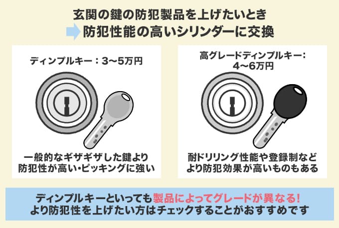「頻繁に交換するものでもないから、しっかりしたものに交換しておきたい」という方は、ディンプルキーがおすすめです。