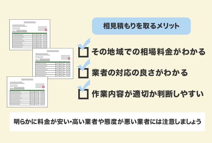 3社も見積りを取れば、その地域での料金相場が分かりますし、「対応の良さ」「作業内容が適切かどうか」も比較することができます。