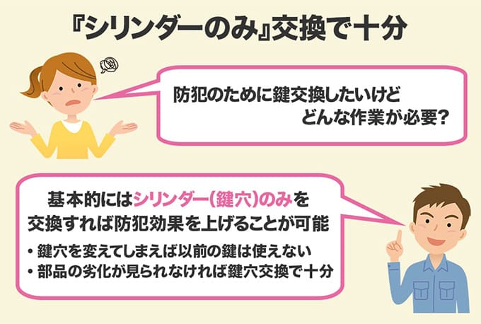 もちろん、一番安心なのは鍵を新しいものに交換することですが、必ずしも交換しなければならないというわけでもありません。