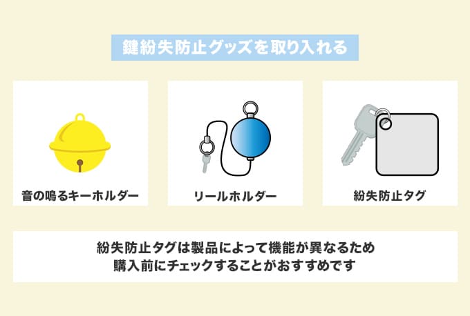 ここでは、鍵を紛失しないための対処法をいくつかご紹介いたします。ぜひ参考にしてみてください。