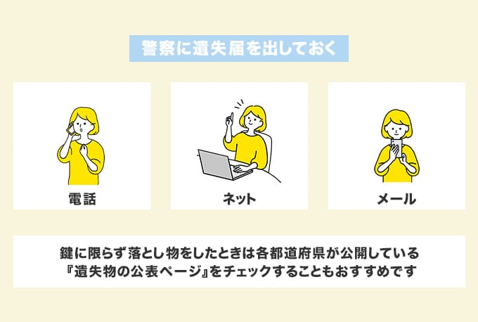 どこを探しても鍵が見つからなかった場合は、警察に遺失届けを出しておきましょう。