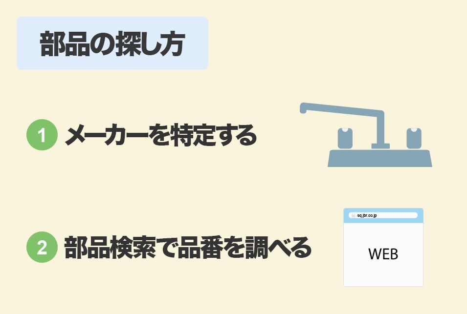 「1つ穴の蛇口しか取り付けられないのに、2つ穴の蛇口を買ってしまった」、「品番が似ていたから同じものだと思ったら、全然違う部品だった」というような失敗はよくあります。