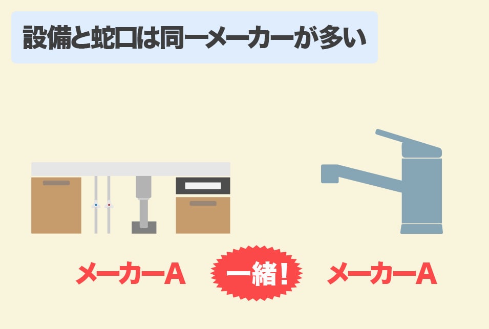 例えば、キッチンがLIXILであれば蛇口もLIXILといった具合に、水栓本体と水栓回りの設備のメーカーが一緒ということはよくあります。