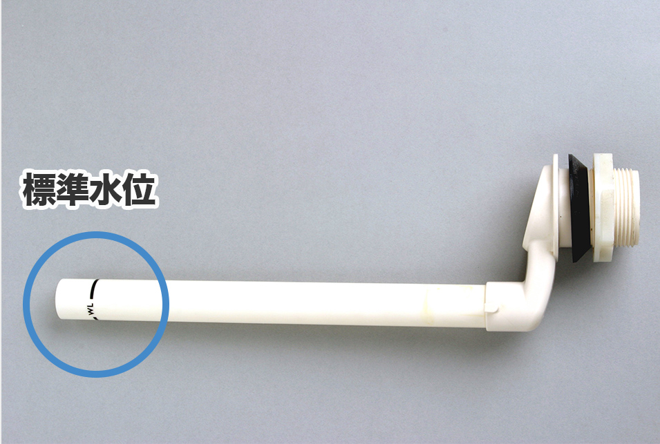 標準水位は、オーバーフロー管の先端から2~3cm下です。この標準水位よりも、水位が低かったり、高かったりした場合は何らかの不具合が生じている可能性があります。