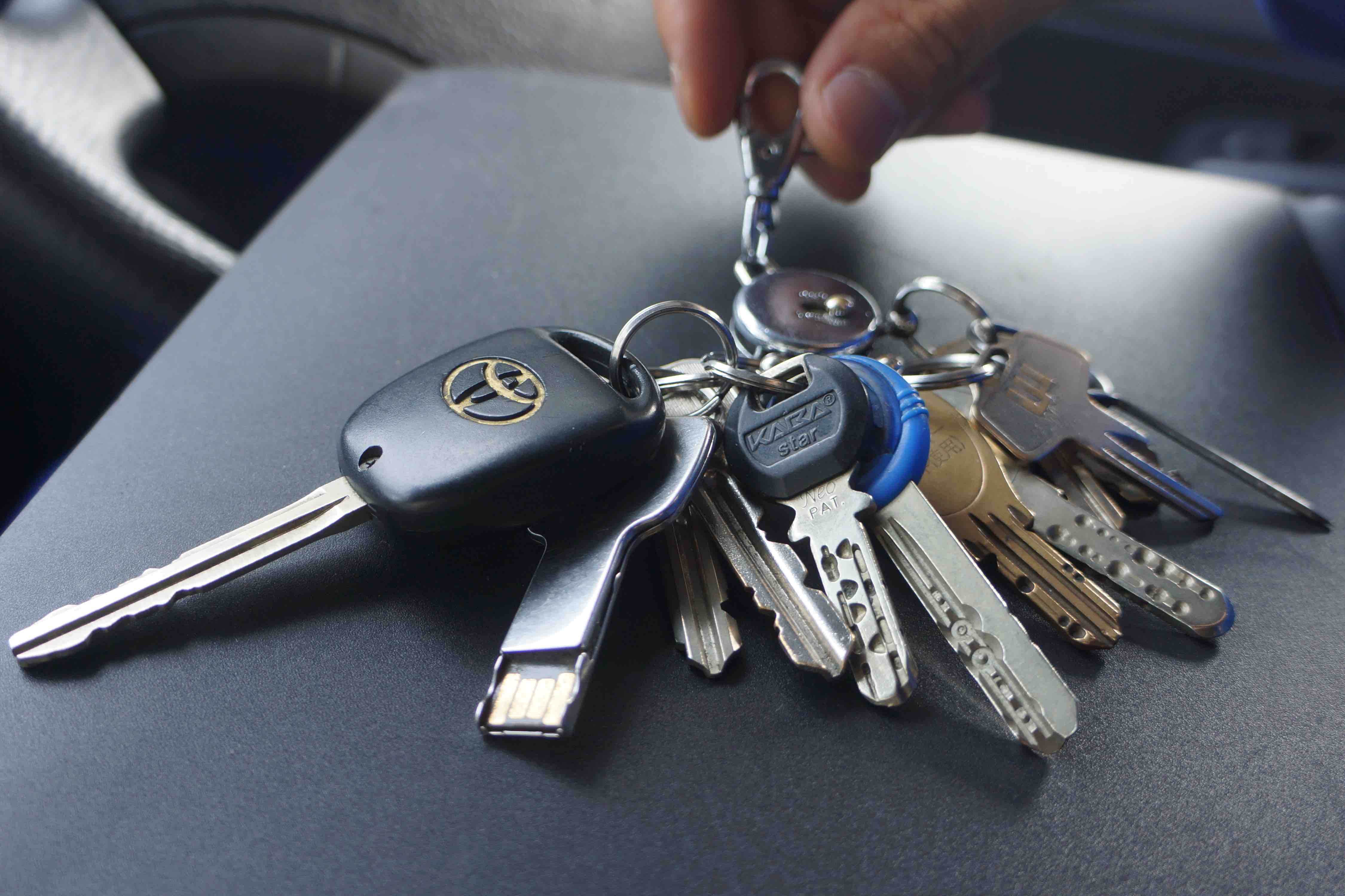 4件目へ向かう前の車内。車のキーに大量の鍵がくっついているのを発見。すごく気になります。