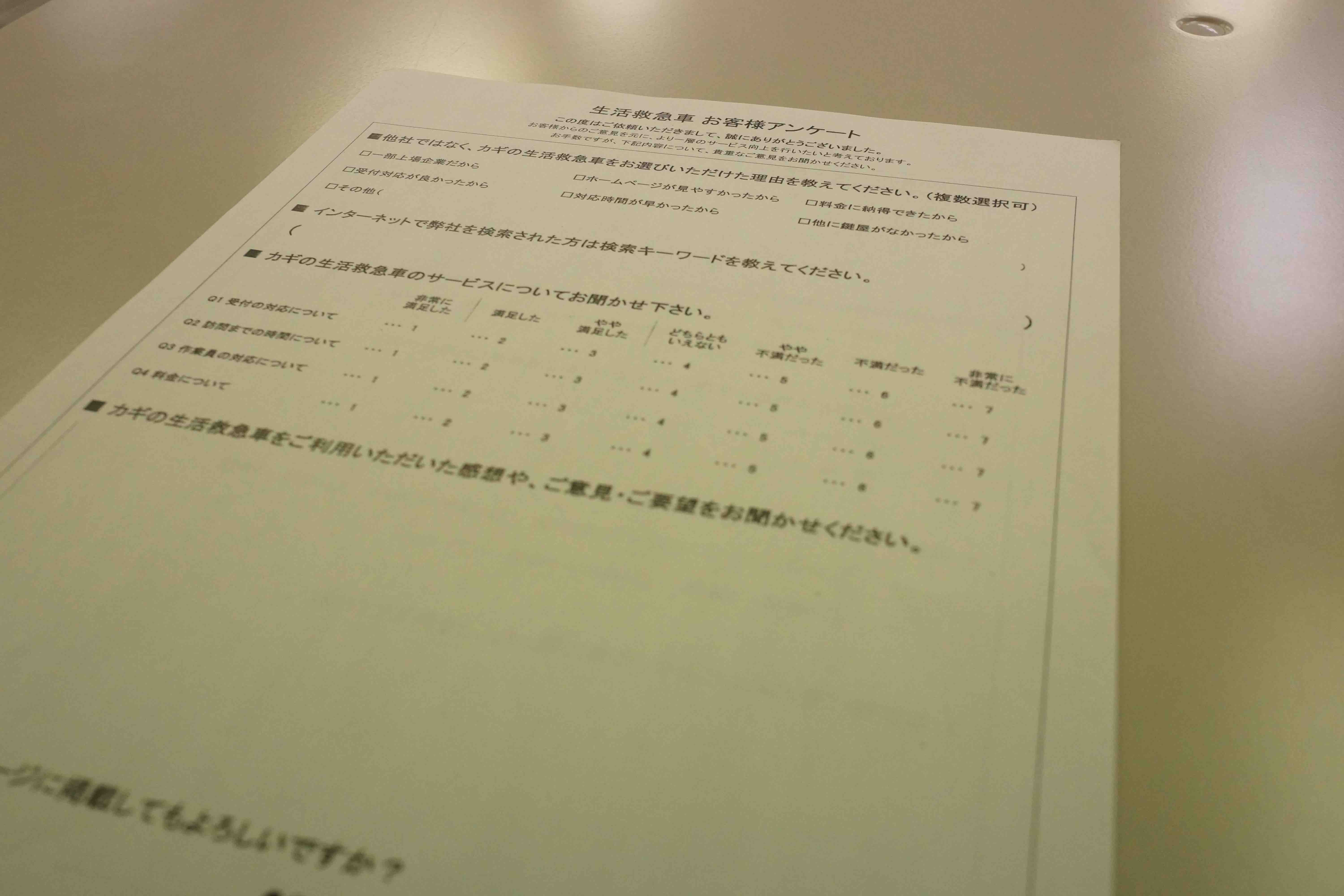 作業が無事終了して確認していただいたあと、お客様に何かを記入してもらっています。どうやらアンケートのようです。何が書かれているのかを見せてもらうと……。